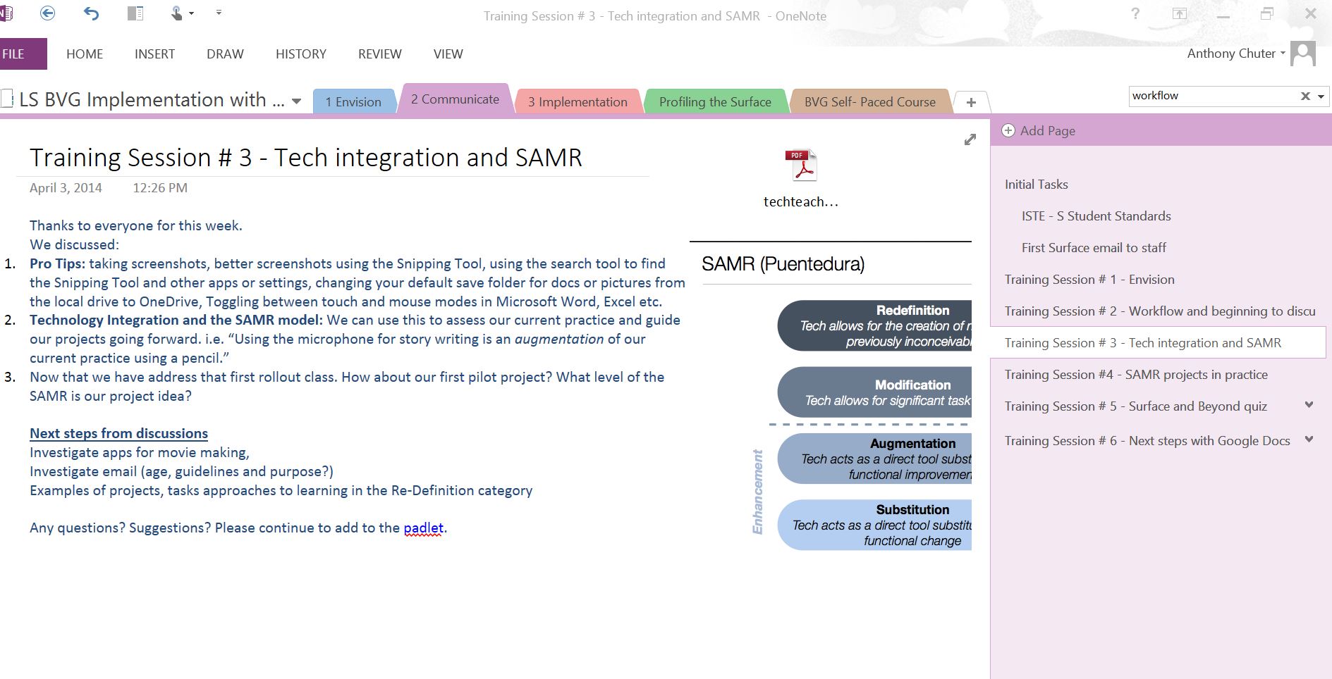 At the beginning of the F2F sessions, we took time to learning the in’s and outs’s of the Microsoft Surface Pro 2 and explored tips and tricks specific to Windows 8.1. For this part of the PD, I leveraging Twitter and in specific @surface, @Microsoft_EDU and @MicrosoftPIL for useful resources and guides.